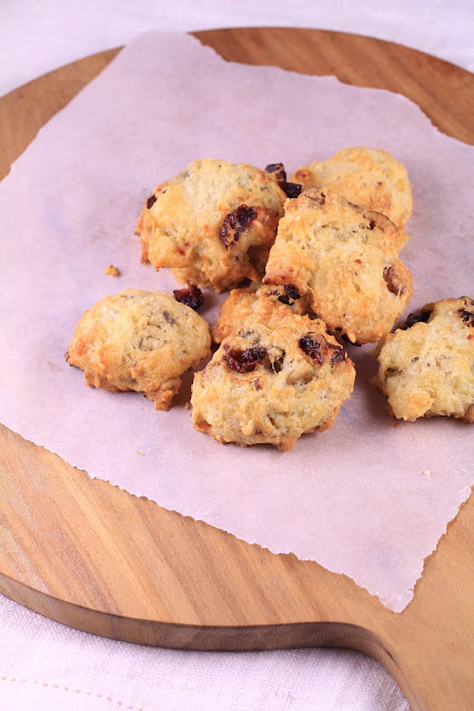 Mélangez le beurre mou et la farine . Ajoutez l'oeuf et la levure , puis le fromage râpé , le roquefort (en petits morceaux ), les noix et les cranberries . Mélangez rapidement pour obtenir une pâte homogène . Formez une quinzaine de cookies et posez les sur une plaque de cuisson recouverte d'un papier sulfurisé . Faites cuire environ 10 minutes pour qu'ils soient dorés . Laissez les refroidir un peu avant de les démouler .Servez les tièdes ou froids.