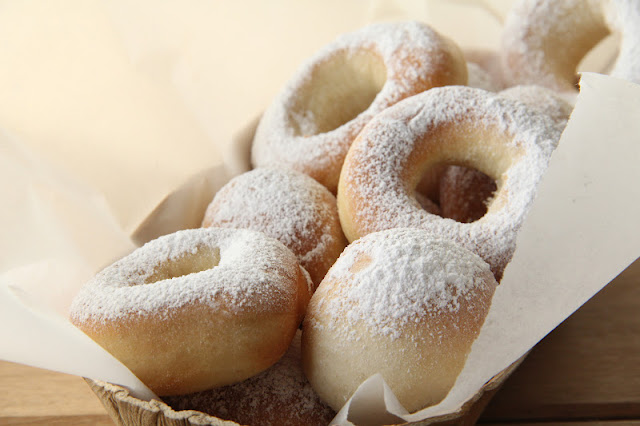 J'ai fait un premier essai de beignets cuits au four car j'adore les donuts américains , mais j'ai quand même du mal à franchir le pas et faire des beignets à la maison , non pas pour l'odeur !! mais parce ce que c'est quand même hyper calorique ... alors cela m'a poussé à tester une version plus light . J'ai trouvé la pâte très moelleuse mais ils n'ont quand même pas le goût d'un vrai beignet . La prochaine fois je ne ferai que des boules dans lesquelles je mettrai un fourrage avec de la confiture .